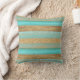 Modern Turquoise Faux Gold Glitter Stripes Pattern Throw Pillow