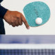 Modern ping pong paddle with a turquoise glitter background and a hand lettered script. Personalize with your name.
