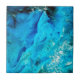 Trendy Stylish Vibrant Aqua Blue Mineral Stone ceramic tile. This print features and up close image of a vibrant blue stone or glass depending on how you look at it. Whether you want to use this tile as a little coaster or trivet for a drink or plate... or you want to go big with a kitchen backsplash, or bathroom tile, is up to you! Do a full wall, border, or just an accent tile. Let your interior design dreams fly!