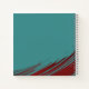 Modern notebook features a minimal artistic design in a complimentary turquoise and red color palette. Personalized name and sketchbook with volume number presented right justified, framed by a minimalistic artistic swoosh design.