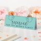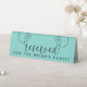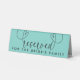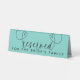 Modern Turquoise Script Hearts Wedding Reserved Table Tent