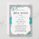 Modern Turquoise Starfish Silver Bridal Shower Invitation