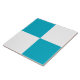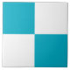 This minimalist ceramic tile features a modern checkered pattern in turquoise and white. The colors are customizable in the Designer tool.