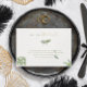 This stylish modern minimalistic DETAILS CARD with Tuscany olive leaves branch with elegant gold and olive green typography. You can customize text, change images, and paper texture background.