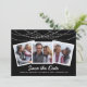 Modern Twinkle String Light Black 3-Photo Save The Date