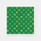 Paper napkins in a Mid-Century Modern pattern of twinkling stars in shades of lime green, jade, aqua and turquoise, outlined in complementary colors, on a deep emerald green background
