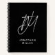 This personalized notebook features a modern and stylish design with a two initial script monogram and your name in a clean and simple sans serif font on a solid black background. The notebook is perfect for personal use, including journaling, note-taking, or as a thoughtful gift for friends and family.