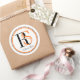 Modern Two Initials Orange Black Wedding Classic Round Sticker