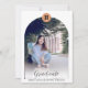 Celebrate the graduate with this modern script graduation invitation featuring an arch shaped photo frame on the front, a second photo on the back room to brag about the grad, too. Class of 20___ also on the front. All Terracotta accent colors easily changed to match your photo or the school colors.
