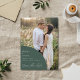 Announce your big day with ease and style using this modern wedding save the date featuring two of your favorite engagement photos and a beautiful earthy green and white design inspired by boho wedding aesthetics. Clean, minimalist typography gives it a timeless touch, while the built-in QR code on the back makes it easy for guests to access your wedding website.