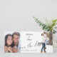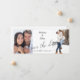 This modern Save the Date Wedding card has templates on each end for your photographs. At the center is modern dark gray script that says "Save the Date", and your custom text in soft gray is in two fields placed above and below. The back of the card can be totally customized by you; even add more photographs if you'd like!