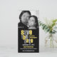 A save the date photo card for the couple that is not afraid of being different. Bold sans serif type in light yellow and shades of gray stand out against the rich black background on this clean but effective card. Add your photo and information. Available in alternate colors with matching products.