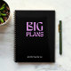 Make a bold statement this year with this trendy ' BIG PLANS ' yearly planner. Design features Modern Typography ' BIG PLANS ' in purple color on a black background. Personalize this planner to make it uniquely yours. Design background color, font color and font style is customizable ( to customize design select edit design option) The perfect gift for the business owner in your life.