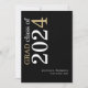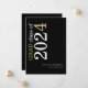 Modern Typography Black 2025 Graduation. A modern stylish typographical design to announce the news of your graduate, with stylish large typography rotated and to the left hand side at the top in white and gold on a classic black background. Easily personalise the rest of the text. including your message on the back