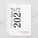 Modern Typography Black Gold 2025 Graduation. A stylish typographical design to announce the news of your graduate, with bold large typography rotated and to the left hand side at the top in black and gold. Easily personalise the rest of the text. including your message on the back