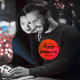 Modern Happy Halloween typography on a red moon on a dark night, very scary matching for Halloween season. Personalize your name or family name.