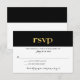 FROM THE WEDDING COLLECTION MODERN TYPOGRAPHY AND STRIPES: RSVP with Black band and a digitally created gold foil for "rsvp" placed on the black band. For a modern yet classy wedding theme. If you have any questions on this design or want a color change please email paula@labellarue.com BEFORE placing an order so a new one can be created for you. If you would like your names in the digital Gold Foil please email before ordering and send me your names so I can create a new design for you. Also check for the Wedding Suite, INVITATION, RSVP, RECEPTION and GUEST SEATING Cards to match! Make sure to pick your favorite cardstock to have it printed on.