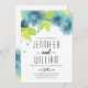 Modern typography blue flowers floral wedding invitation