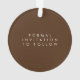 Your invitees will be able to keep your wedding date handy and displayed in style with this elegant keepsake ornament to ask them to Save your Date. A fully customisable design with brown curved text with Save Our Date above and location of your wedding curved below, with the month and year of your wedding overlaid upon the day which is in a cream italic text in the middle. Your names are placed above and below the date in a handwritten style. Further text is on the back in cream on a coordinating brown background. All the text is easily personalised. You can also change text and background color to better suit your wedding color scheme if you wish via the customise further option. If the curved text doesn't quite line up when you change it to your location you can tweak the size via customise further or please message me via the home page of my store if you need help with this or other customisation you need assistance with.