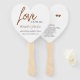 Simple chic modern calligraphy handwritten script copper glitter Love is in the air wedding program template hand fan with two little hearts on the back side.. ++++++++++ Easy to personalize with your details! +++++++++++ Suitable for trendy outdoor summer wedding ceremonies and receptions - garden, backyard, seaside, beach, holiday resorts.