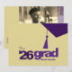 The design blends modern editorial style with a simple, organized layout that highlights the graduates graduating year. A dedicated space for a photo and short bio on the back allows you to personalize the announcement and share a bit about your graduate’s accomplishments and future plans.