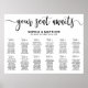 Personalize this modern monochrome typography wedding seating chart with your own details easily and quickly, simply press the customize it button to further re-arrange and format the style and placement of the text. (c) The Happy Cat Studio