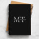 This Notebook features a sleek, minimalist design with a dark background and contrasting white text. Large, serif-style initials are centered and divided by a thin vertical line for symmetry, with smaller uppercase text below in a modern sans-serif font. The layout is clean and uncluttered, creating a refined, professional, and contemporary aesthetic.