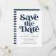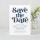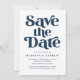 Modern save the date card featuring "Save the Date" displayed in bold navy lettering with a white background. Personalize the stylish save the date card with your names, wedding date, location, wedding website, and other important wedding details.