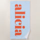 Modern Typography Personalized Name Blue Orange Beach Towel