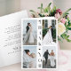 Simple minimalist black and white trendy typography personalized wedding thank you folded card with four photos, your custom text, and signature.
