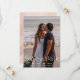 A very modern bold typography font forms the classic phrase Save The Date on the front with a peach watercolor abstract pattern on the back. Easily customize with your photo, wedding details, and wedding website URL on the front and back.