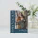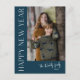 Modern Typography Simple Photo New Year Holiday postcard features a vertical photo and headline with customizable script name and text on the front. The back has a personal message and signature. Click the edit button to personalize this design.