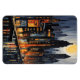 Bring the energy of the city into your home with this stunning Modern Urban Nightscape flexible photo magnet art print. AI-generated and inspired by the captivating allure of city life, this artwork features a dynamic skyline illuminated by the warm glow of streetlights and the reflective shimmer of water. The bold contrast of dark skyscrapers and vivid orange lights creates an atmospheric, vibrant city scene perfect for adding an urban touch to any room. The soft glow of the moon casts a surreal, almost dreamlike quality over the city, making this piece a perfect fusion of modern expressionism and classic cityscape art. This city nightscape captures the timeless appeal of metropolitan life, offering a unique perspective on the beauty of cities after dark. Ideal for modern interiors, lofts, or office spaces, this artwork makes a statement with its bold contrasts and rich color palette. It’s the perfect gift for architecture lovers, city dwellers, or those seeking to add urban sophistication to their decor. Whether for housewarmings, birthdays, or other special occasions, this piece is sure to impress.