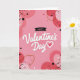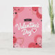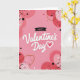 This Valentine's Day card features the words “Happy Valentine’s Day” large in the center in smooth white lettering on a bright fuchsia background. Rounded, cloud-like shapes in shades of pink and red frame the message around the edges. Scattered dots in black, white, and deep red sit across the card like confetti, along with a few wavy lines and diagonal stripes for extra texture. In the word “Day,” the “a” is replaced by a white heart that holds a smaller dark red heart inside it. The overall look feels cheerful and affectionate, like a simple note that says “I’m thinking of you” ❤️. It’s a nice choice for a partner, a close friend, or anyone you want to make feel cared for 🥰.