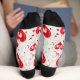 These charming Valentine’s Day socks are designed to spread love and style with every step. Featuring a lively pattern of bold red hearts adorned with elegant swirling details, the design exudes romance and whimsy. Each heart is personalized with delicate “MW” monogram initials, adding a thoughtful and customized touch to the overall look. The clean, cream-colored background enhances the vivid red tones, while playful mini hearts float across the design, creating a festive yet sophisticated vibe. Completed with sleek black toe and heel accents, these socks are perfect for adding a dash of Valentine’s flair to any outfit. Replace the monogram initials with your own preferred initials.