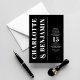 Plain white envelopes are included with paper invitations and will come to fit the invitation size you select. If you don’t need the envelopes, you may choose to not receive them by selecting the dropdown below "Envelopes" and choosing "None." If you’d like to have a design on your envelopes, you can browse all of these available envelopes to find the design that complements your Modern Vertical Bold White And Black Wedding Invitation.