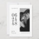 Instead of the usual horizontal text, it places your wedding date in a cool, modern vertical layout right alongside your black and white couple photo. It completely nails that chic, monochrome wedding stationery vibe without feeling cluttered. Whether you are planning a grand city event or a stylish destination wedding, this minimalist layout gives off pure "old money" energy.
