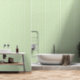 Modern vertical Light Green striped pattern wallpaper suits any room, including the living room, bathroom, kitchen, bedroom, or nursery. The wallpaper shown is textured vinyl that can be easily peeled and stuck. It comes in a 2' x 12' sheet. You have the option to choose from different styles and sizes.