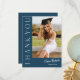 This modern elegant stylish photo graduation thank you card features a vertical photo and headline with customizable script name and text on the front. The back has a personal message and signature that are both removable if you prefer to hand write your thank you notes. Click the edit button to personalize this design.