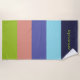 Modern design with vibrant stripes in the Pantone spring/summer colors of 2022 and chic typography. Make a bold statement at the beach or pool this summer with this colorful beach towel. Add your name to the towel and make it uniquely yours.