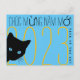 Cat's silhouette. Design on horizontal holiday postcard with simple lettering (Vietnam Happy New Year greeting) and large 2023 in yellow and 'Year of the Cat" with blue background for Water element. Matching greeting card. Perfect for Vietnam New Year of the Cat 2023 or Birthday (people born in Cat Year).
