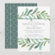 An elegant botanical bridal shower invitation bordered in blue-green watercolor vines. The background color is shown in white, but can be customized to match your wedding theme.