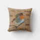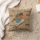 Modern Vintage Robin Bird burlap script Throw Pillow