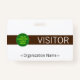 This sleek badge design features the message "VISITOR", and a customizable company name or other custom message. A badge like this could be used to identify that somebody at a workplace or business is an authorized guest/visitor. [~Z0000307]