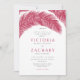 Modern Viva Magenta Summer Palm Leaves Wedding Invitation
