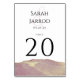This table number features the bride and groom's names at the top. Also featured is colored artwork from the Viva Magenta color palette. Modern Viva Magenta Wedding Table Number.