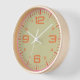 Add a touch of retro charm to your space with this modern wall clock. Featuring a warm beige face accented with bold orange numbers and sleek white hands, this clock combines classic design elements with a contemporary twist. The wooden frame and soft pink inner ring provide a pop of color, making it perfect for a stylish home or office setting. Easy to read and visually striking, this clock is both functional and decorative, perfect for brightening up any room.