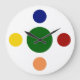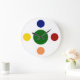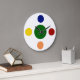 Modern wall clocks in a primary color bold polka dots design on the clock face in this wall decor clock for your kitchen, bathroom, or any room in your house you want to add some character and style. Clock face has search engine colors.