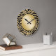 Modern wall clock with gold and black zebra stripes pattern and simulated gold design element on the clock face in this decorative wall decor clock design for your kitchen, bathroom, or any room in your house you want to add some color and and style.