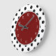 Modern polka dots wall clocks with black white and red color scheme that includes fun polka dogs on the clock face in this decorative wall decor clock design for your kitchen, bathroom, or any room in your house you want to add some color and character.